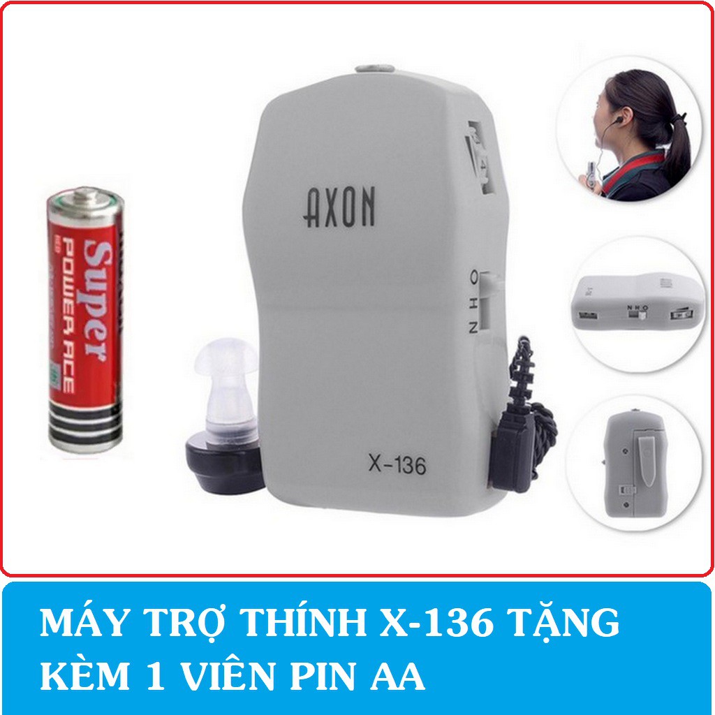 Máy trợ thính có dây nghe 1 tai Axon X136 nghe to rõ đã kèm pin free ship